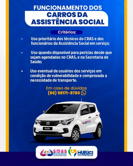 A Secretaria de Assistência Social de Murici dos Portelas disponibiliza carros para apoio e transporte relacionado aos serviços oferecidos à…