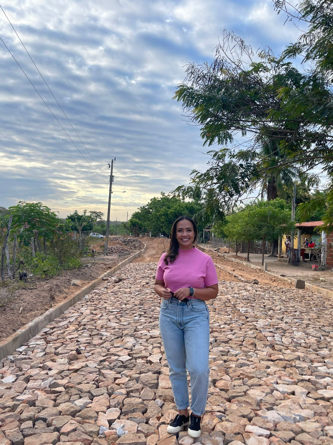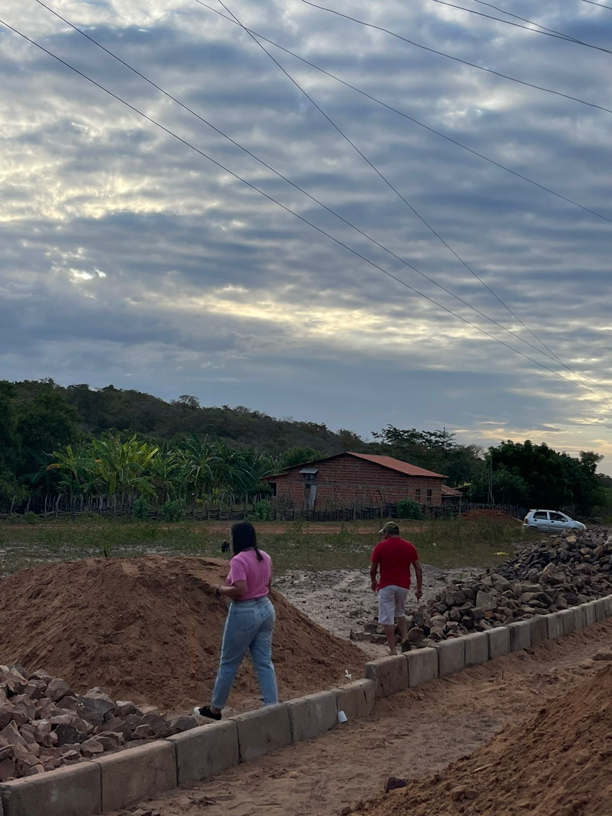 A Prefeita Ana Lina Esteve Visitando a Obra de Calçamento na Localidade Chamurro. Serão 230 Metros de Calçamento Que Contribuirão para a Melhoria de Qualidade de Vida da População Dessa Localidade.